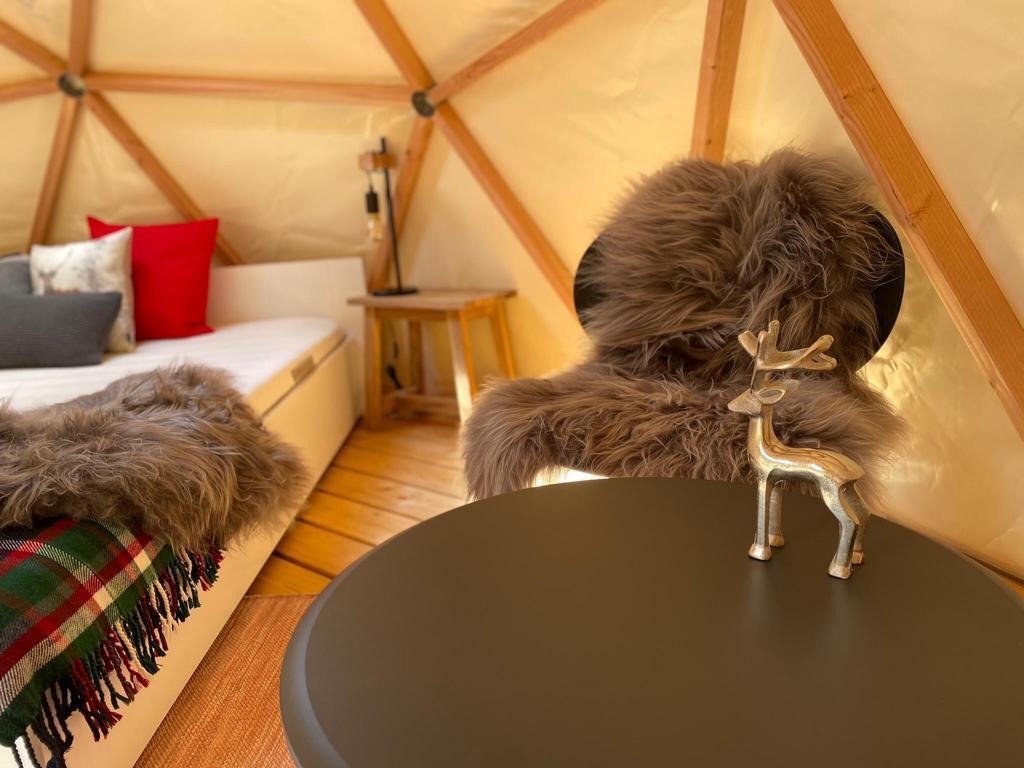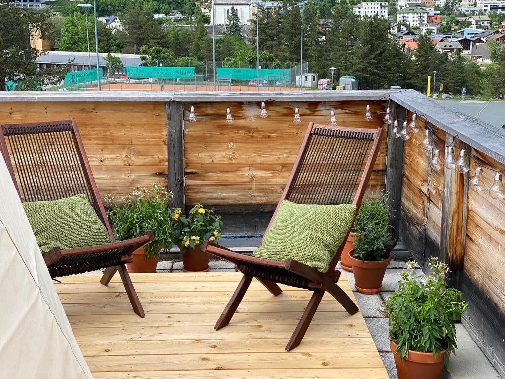 Une expérience peu banale que de passer une nuit dans le confortable et romantique Géopode. Fabriqués en bois et en toile imperméable, les deux Géopodes sont confortablement aménagés pour deux personnes. Ils se tiennent ensemble sur une terrasse semi-fermée avec une vue unique sur les montagnes de Basse Engadine.