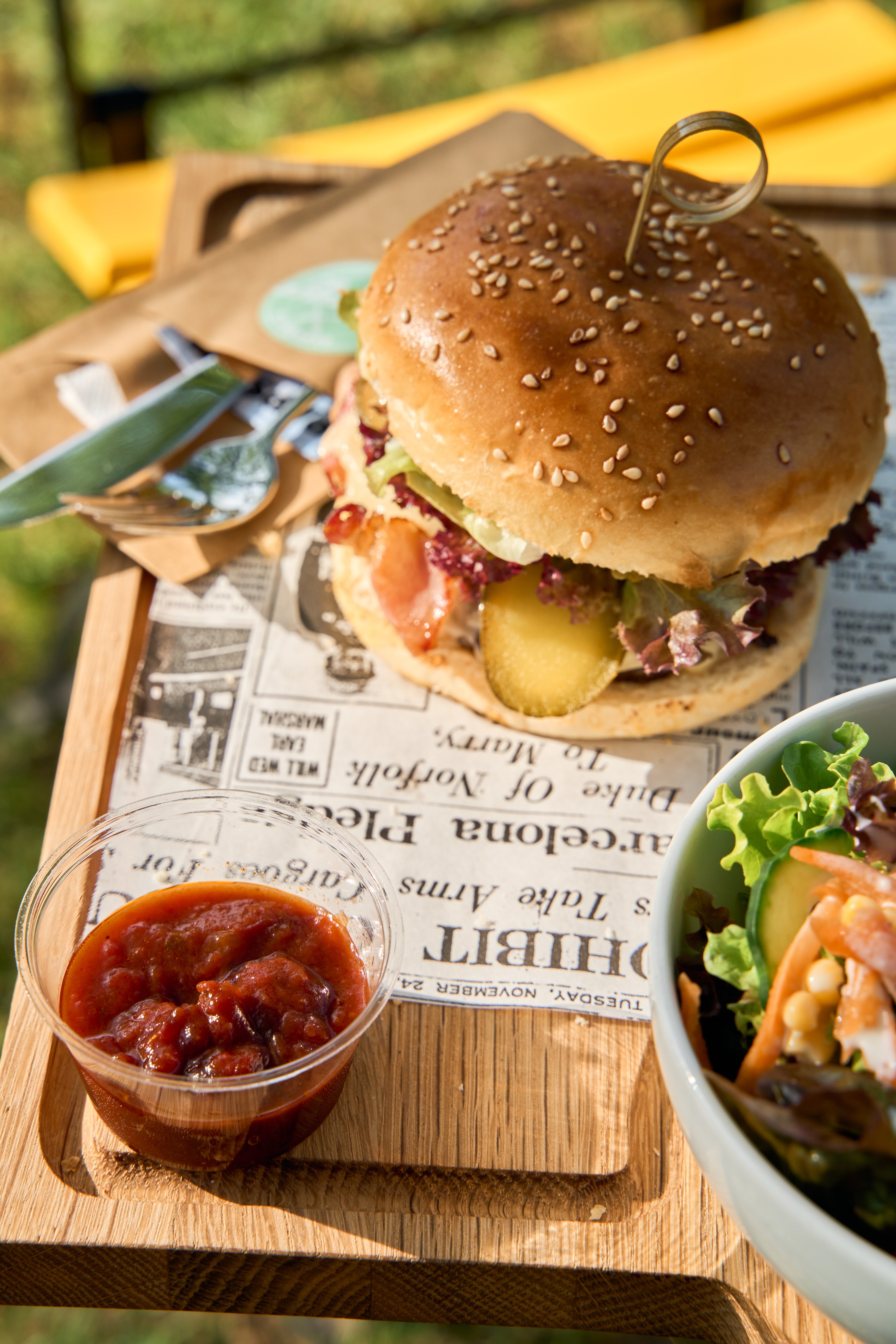 Profitez de l'ambiance chaleureuse en dégustant l'un de nos célèbres hamburgers et une boisson régionale, et offrez-vous une petite pause loin du stress quotidien dans un cadre verdoyant. Nous nous réjouissons de vous régaler avec nos délices de saison. Bon appétit !